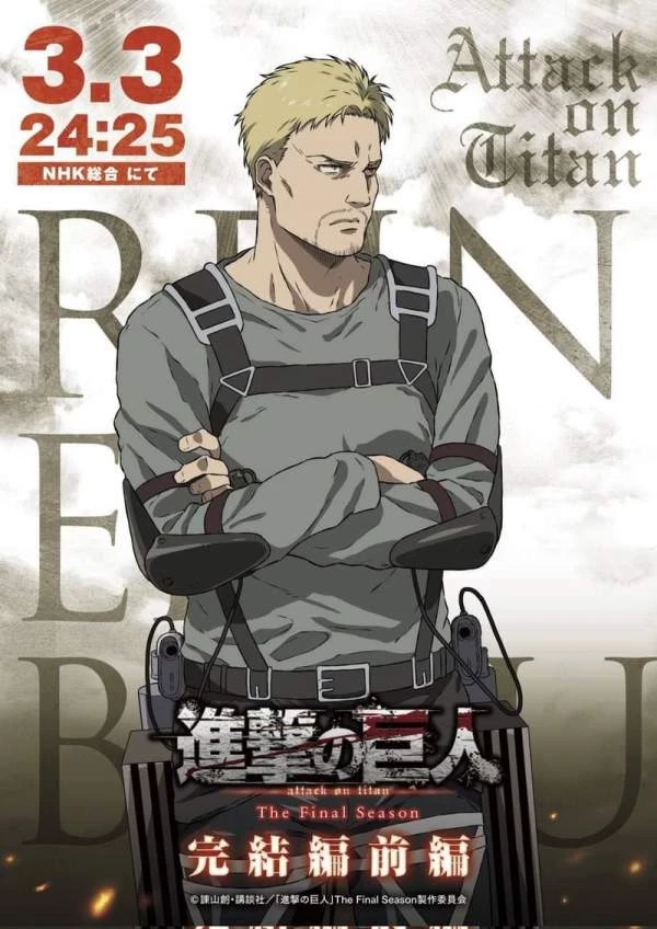 Сервис Crunchyroll поделился подборкой персональных постеров главных героев первой части финала "Атаки титанов". На них показана лишь часть героев, включая раненого Леви и Райнера.