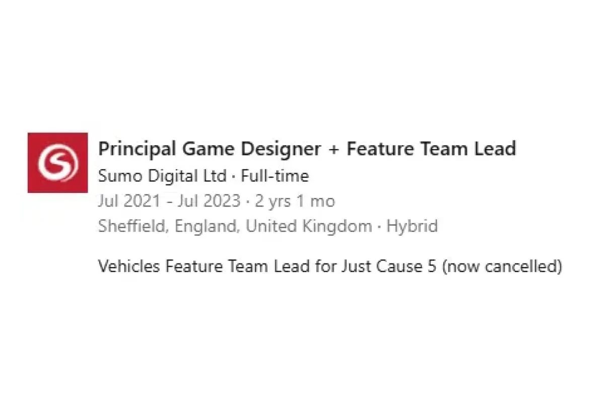 Ещё больше интересных видео на YouTube канале Игромании!Обложка: скриншот Just Cause 4Появились новые подробности о судьбе Just Cause 5: судя по данным из профиля бывшего сотрудника Sumo Digital, студия работала над игрой с 2021 по 2023 год, но в итоге разработка была отменена.
