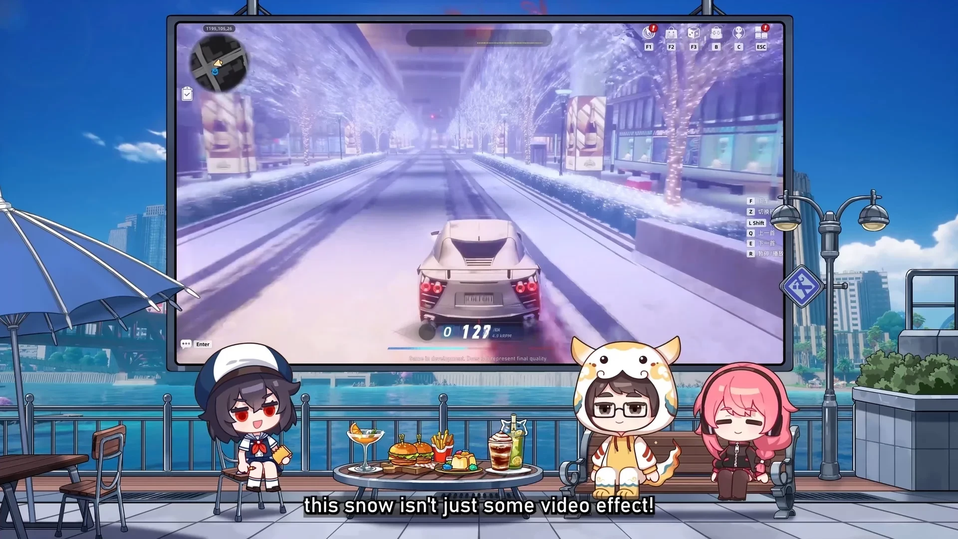 Потоки ветра тоже влияют на полупрозрачные белые хлопья, заставляя их колыхаться или образовывать метель. Прохожие и транспорт оставляют следы. Снег влияет и на геймплей, накладывая пассивное состояние «дрифт» на машину. Непогоду можно и отключить, выполнив некоторые дополнительные задания.