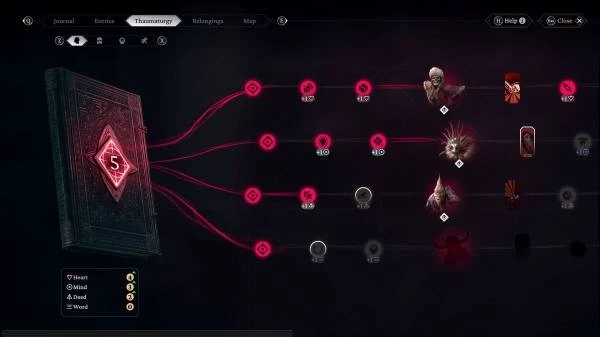 - у Виктора есть и собственные навыки, которые открываются за очки тауматургии и позволяют ему улучшать способности в четырёх «Измерениях»: «Сердце» (Heart), «Сознание» (Mind), «Поступок» (Deed) и «Слово» (Word). Умения влияют на сражения, взаимодействие с людьми и даже исследование мира;