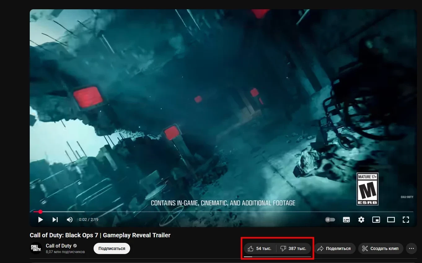 Трейлер Call of Duty: Black Ops 7 собрал почти 400 тыс дизлайков на фоне хайпа Battlefield 6